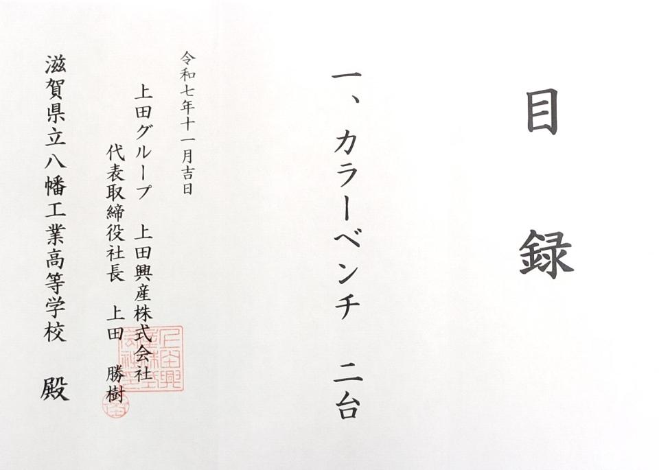 上田興産株式会社様からベンチを寄贈いただきました!