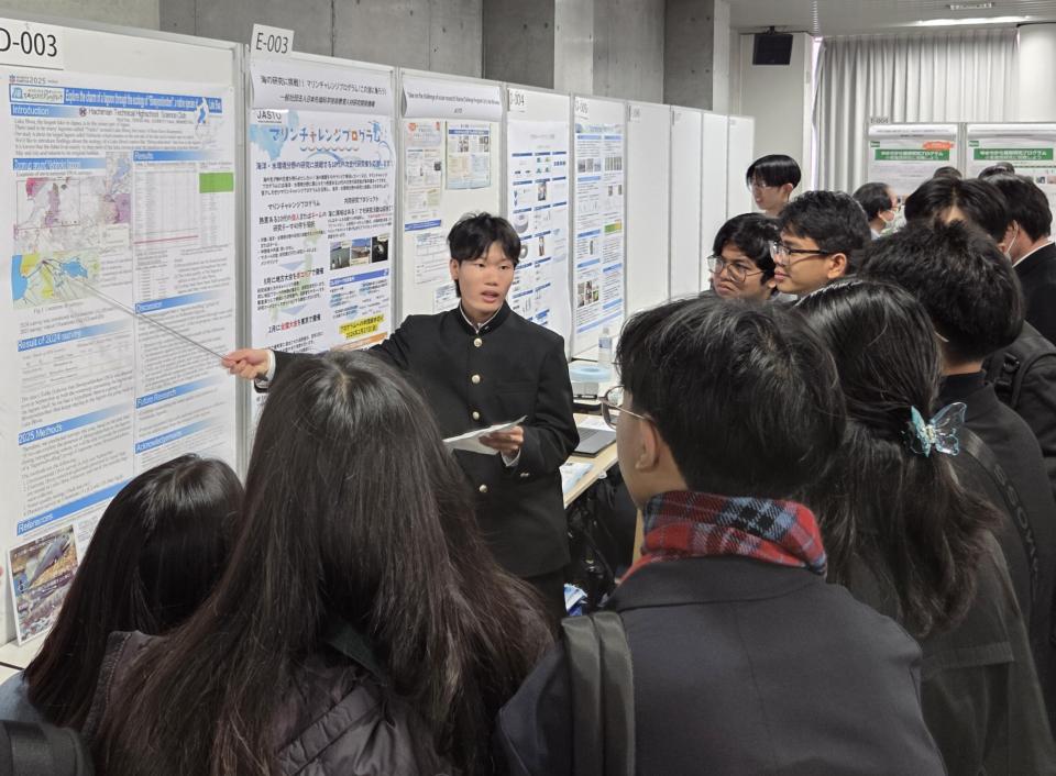 科学研究部では、昨年度からTASUKI -襷- Projectに参加し、環境DNAを活用した生態系調査に取り組んでいます。今回、その研究成果を発表するため、東京科学大学で開催された「サイエンスキャッスルワールド2025」に参加しました。